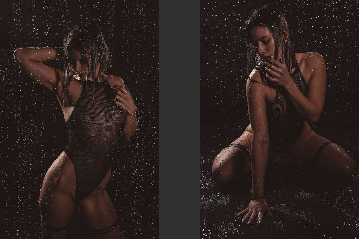 Viele denken das ist alles nicht echt... – DOCH – alles real. Ich kann es in meinem Studio regnen lassen und es macht riesen Spaß. So ein Regenshooting kann man so ca. 1,5 bis 2,5 Std. machen, danach ist das Wasser ausgekühlt. Das ganze kann man noch mit Schaum und Nebel kombinieren. Meine Zinkwanne erfreut sich auch immer größerer Beliebtheit. Das Set hierfür ist auch sehr variabel. Viele wollen aus der Wanne gar nicht wieder raus. Ich sollte vielleicht Wellness-Shootings anbieten. Desweiteren habe ich noch die Möglichkeit in einem kleinen Schwimmbad Fotos zu machen. Die Kosten hierfür immer nur auf Anfrage.