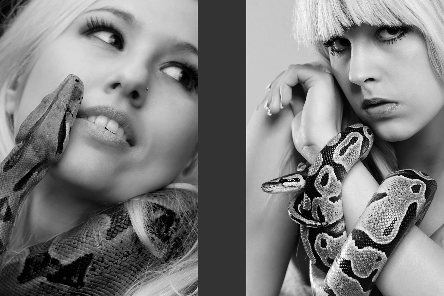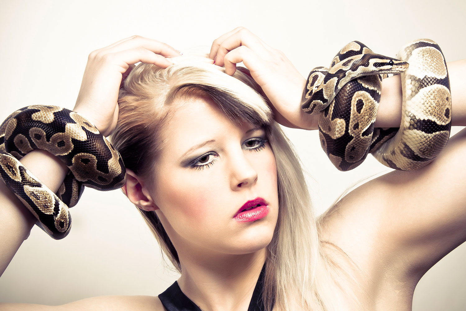 Bei einem SchlangenShooting sollte man vor dem eigentlichen Shooting sein Shootingpartner einmal kennengelernt haben. Es ist besonders wichtig, damit Du siehst wie die Schlangen auf Dich reagieren und wie DU Dich mit den Tieren zu verhalten hast. Eine fachkundige Person ist immer an Deiner Seite. Die Tiere sind an Menschen gewöhnt. Eine Schlange auf nackter Haut zu spüren ist eine schöne Erfahrung. Man darf aber nie vergessen, dass es wilde Tiere sind und so ein Shooting immer nur auf eigene Gefahr gemacht werden kann. Das gesamte Shooting findet natürlich unter streng tierschutzgerechten Bedingungen und unter ständiger Beobachtung eines Schlangenexperten statt. Die Kosten für die Tiere immer nur auf Anfrage!