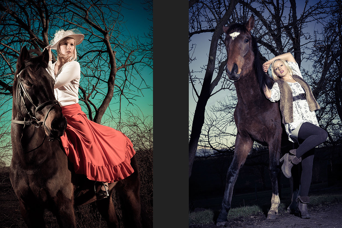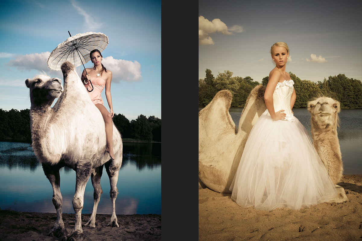 Pferde und Hunde sind meist gut zu händeln, aber bei Greifvögeln, Zebra, Kamel oder auch Reptilien sieht das schon anders aus. Hier muss man sehr behutsam an das Shooting herangehen und die Verhaltensmuster der Tiere genau beobachten. Solche Shootings sind eine große Herausforderung für alle Beteiligten, und wenn dabei noch die geplanten Bilder entstehen, ist es ein unbeschreiblich schönes Gefühl. Die Kosten für die Tiere sind immer zusätzlich und auf Anfrage.