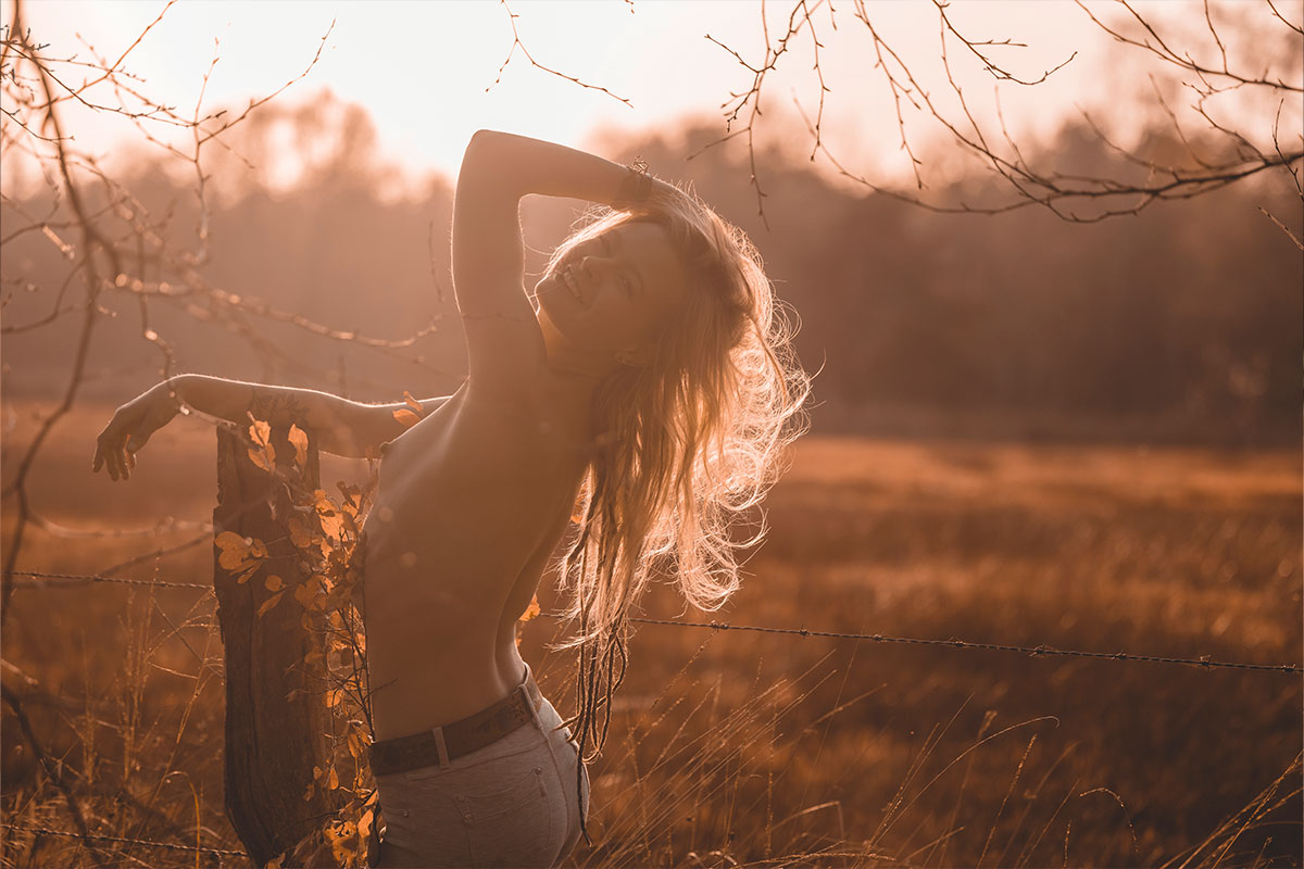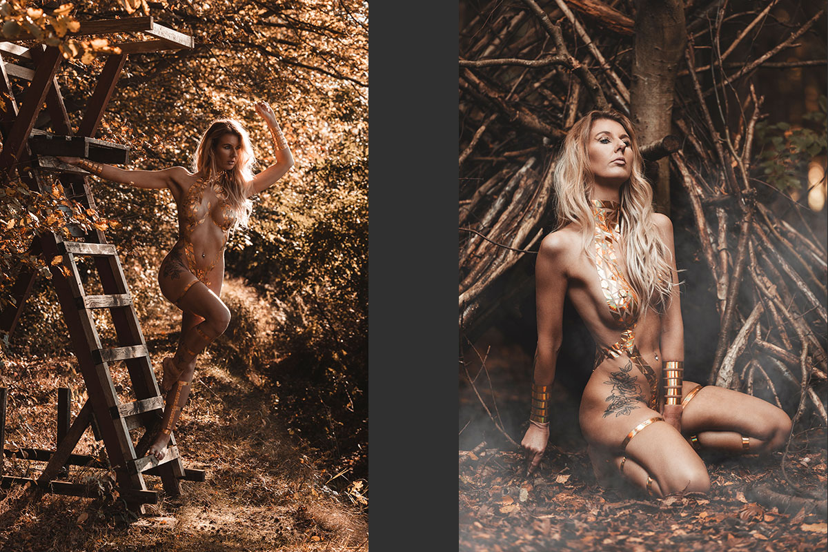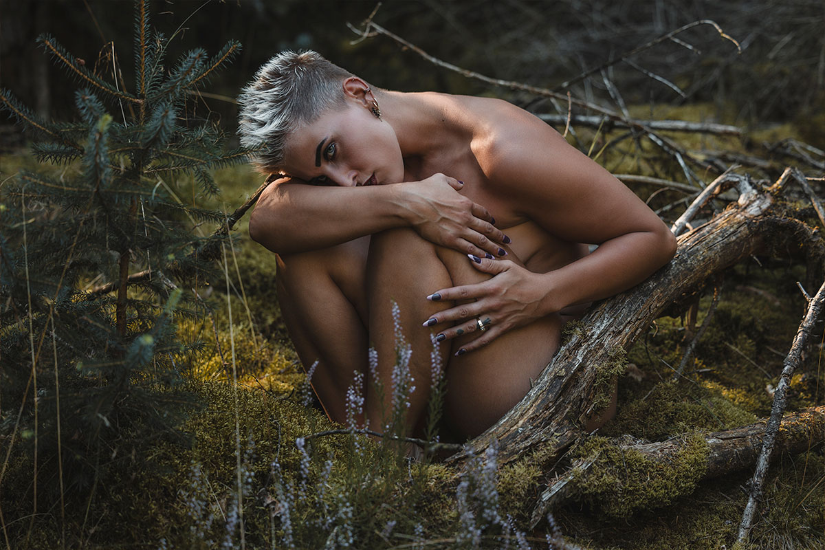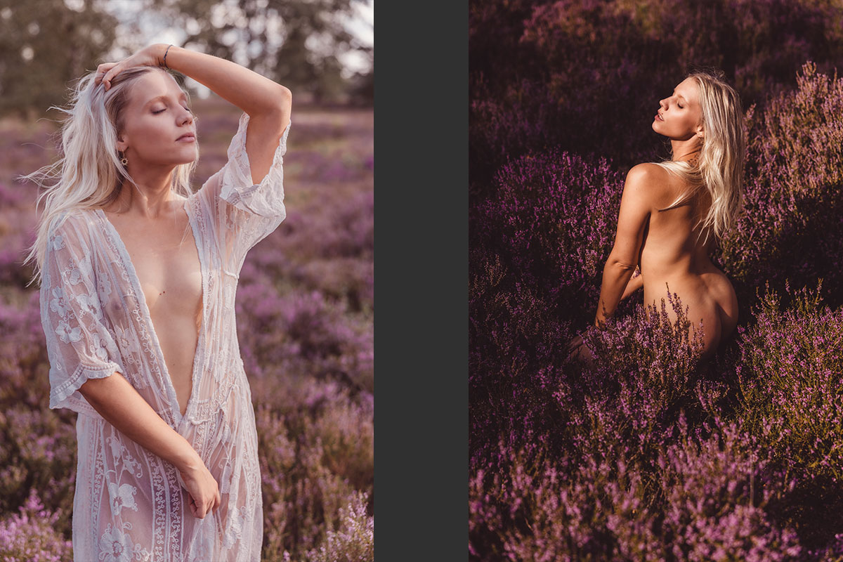 Unsere nordische Landschaft ist viel durch Wald, Moore und Heidelandschaften geprägt. Warum die dann nicht für Shootings nutzen? Im August, wenn die Heide blüht, zieht es mich besonders da hin um zu shooten. Durch Stürme werde oft viele Bäume umgeworfen. Diese knorrigen Wurzeln eignen sich hervorragend für Fotos, aber auch die farblich unterschiedlichen Moosflächen sind immer wieder gut geeignet. Bei allen Shootings in der Natur achte ich immer besonders darauf, dass wir nichts zerstören.